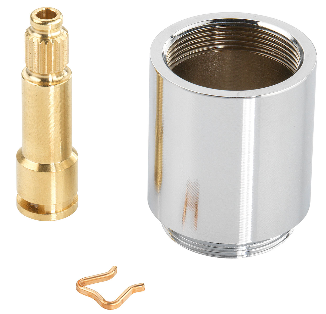 bis 55 mm, passend für DN 15 und DN 20, bestehend aus Verlängerungshülse, Spindelverlängerung und Befestigungsclip