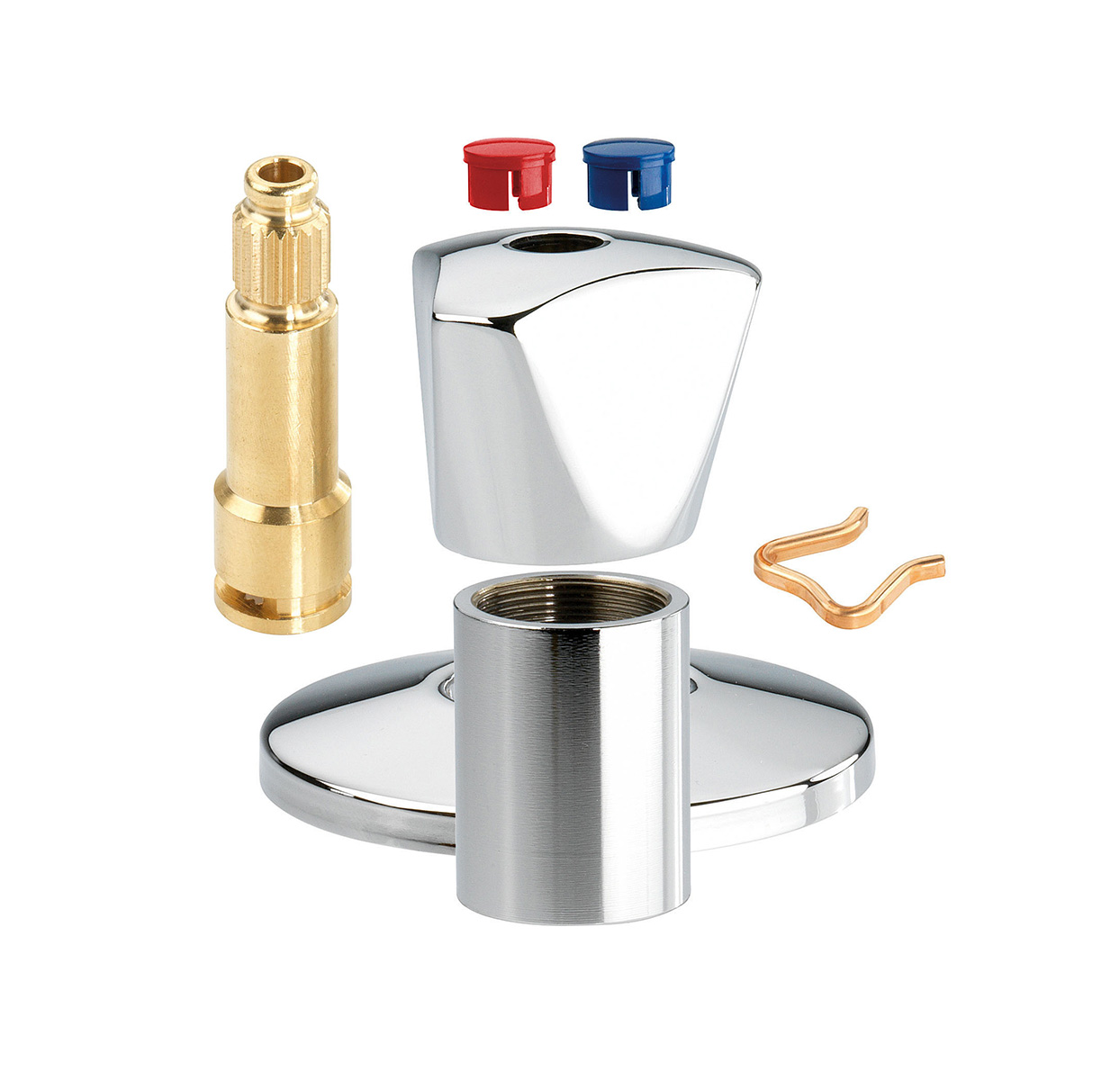 bestehend aus Dreikanthaubengriff aus Kunststoff mit Wechselclip warm/kalt, Hülse verchromt, Rosette chrom