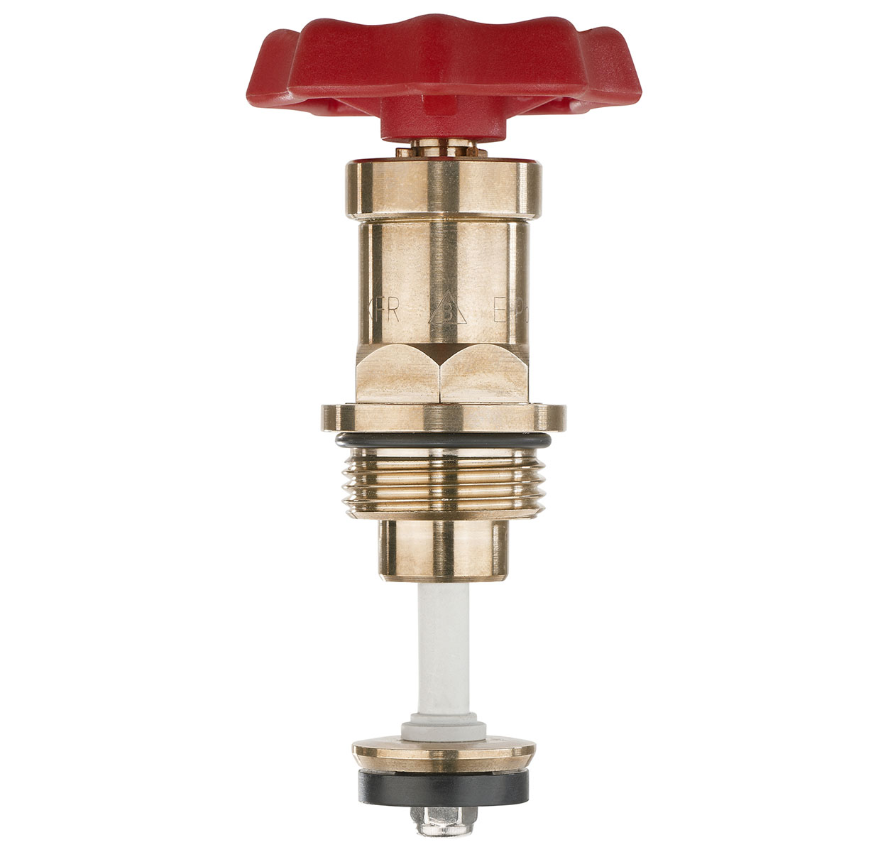 Für KFR-Ventile nach DIN EN 13959, Werkstoff nach DIN 50930 Teil 6 bzw. UBA Liste 03/2018 sowie entzinkungsbeständig nach EN ISO 6509, totraumfrei, long-life, innenliegende Rückschlagfeder, mit nichtsteigender teflonisierter Spindel sowie SOFT – Antriebssystem