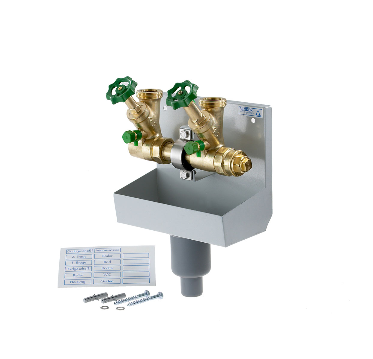 bestehend aus: 1 Abzweig T- Ventil KFR nach DIN EN 13959 (Einbau links) sowie 1 Abzweig T-Ventil Freistrom nach DIN EN 1213, Abschlusskappe rechts, Kunststoff Kompaktsifon, Stahl Entleerungsrinne pulverbeschichtet / rostfrei für 2-fach Verteiler, Breite 250 mm, Satz Etiketten, Satz Befestigung